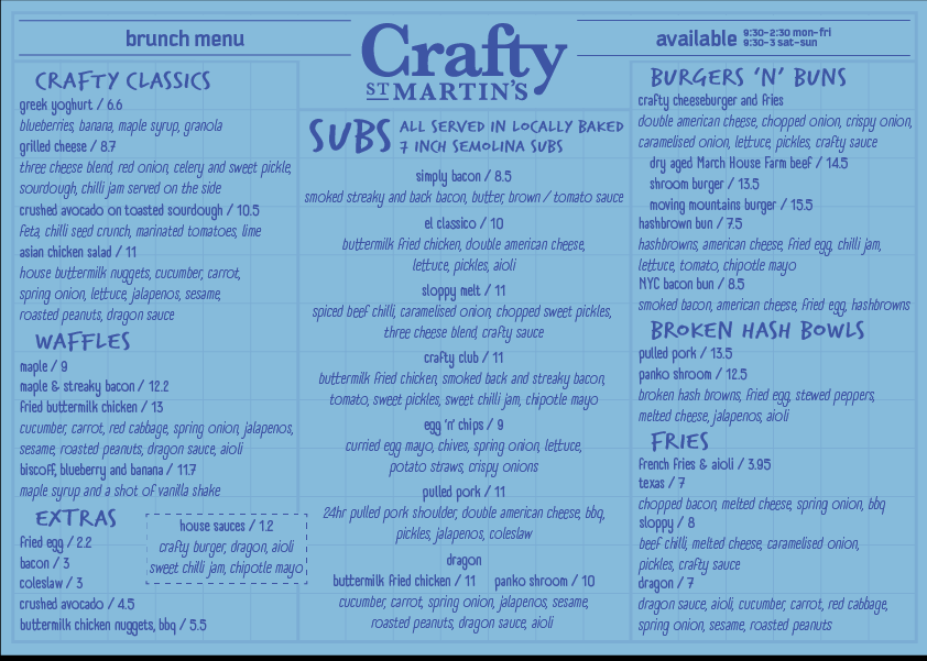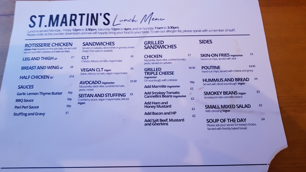 The St Martin's Coffee Shop Menu caters to a variety of palates, offering everything from artisan coffee to indulgent brunch staples. Their flat white, crafted with locally roasted beans, strikes an ideal balance between strength and creaminess-no bitter aftertaste, just smooth satisfaction. Pair it with their Smashed Avocado on Toast, generously topped with poached eggs, chili flakes, and microgreens, and you’ve got a breakfast worth writing home about.